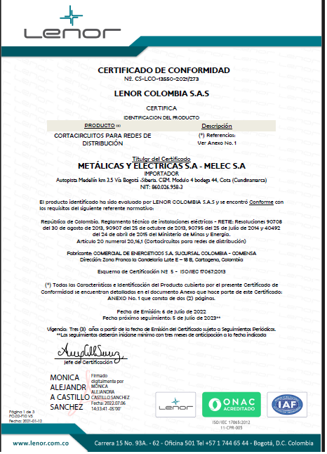 PRODUCTOS ELÉCTRICOS PARA LA PROTECCIÓN DE REDES DE DISTRIBUCIÓN DE ENERGÍA: CORTACIRCUITOS, DESCARGADORES Y SECCIONADORES